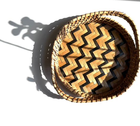 Chevron Rattan tray with handles