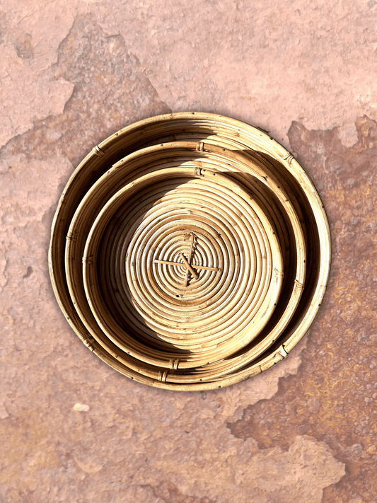 Natural Round Cane Tray ⎢Set of 3 ⎢Handwoven by Expert Artisans.